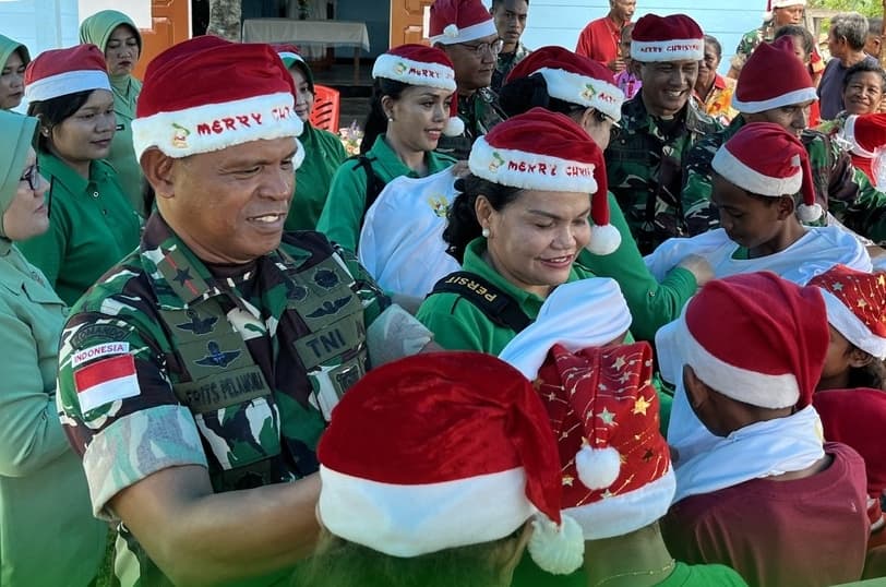 “Bapak bapak TNI datang ke sini untuk mengucapkan selamat hari Natal 25 Desember, semoga damai dan kasih Natal selalu ada di hati kita semua,” Ujar Danrem.
