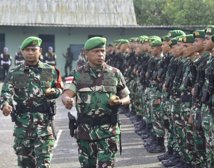 Nabire Papua Tengah, Komandan Korem 173/PVB, Brigjen TNI Frits W.R. Pelamonia, memimpin langsung apel gelar pasukan dalam rangka pengamanan Natal 2024 dan Tahun Baru 2025. Kegiatan berlangsung di Lapangan Upacara Kodim 1705/Nabire, Jalan Ahmad Yani, Kabupaten Nabire, Provinsi Papua Tengah. Jumat (20/12/2024).