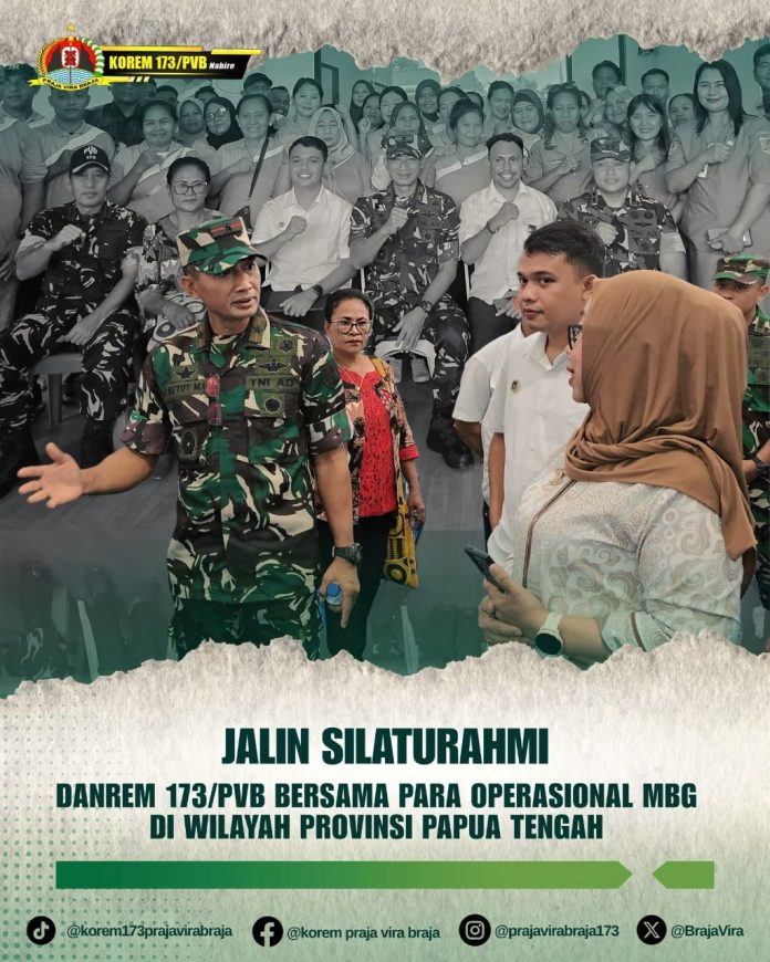 Nabire – Komandan Korem 173/Praja Vira Braja (PVB), Brigjen TNI I Ketut Mertha Gunarda, melaksanakan kegiatan silaturahmi bersama para personel operasional Program Makan Bergizi Gratis (MBG) di Kabupaten Nabire, Provinsi Papua Tengah, pada Selasa, 06 Desember 2026.