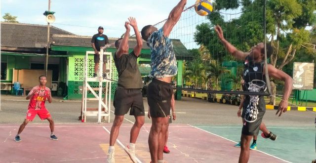 Biak – Bertempat di lapangan voli Kodim 1708/BN Tim voli Kodim 1708/BN melakukan uji coba pertandingan melawan Tim voli Kole-Kole Cendramata, Jl. Sriwijaya, Kelurahan Brambaken, Distrik Samofa, Kabupaten Biak Numfor, Kamis (12/1/2023).