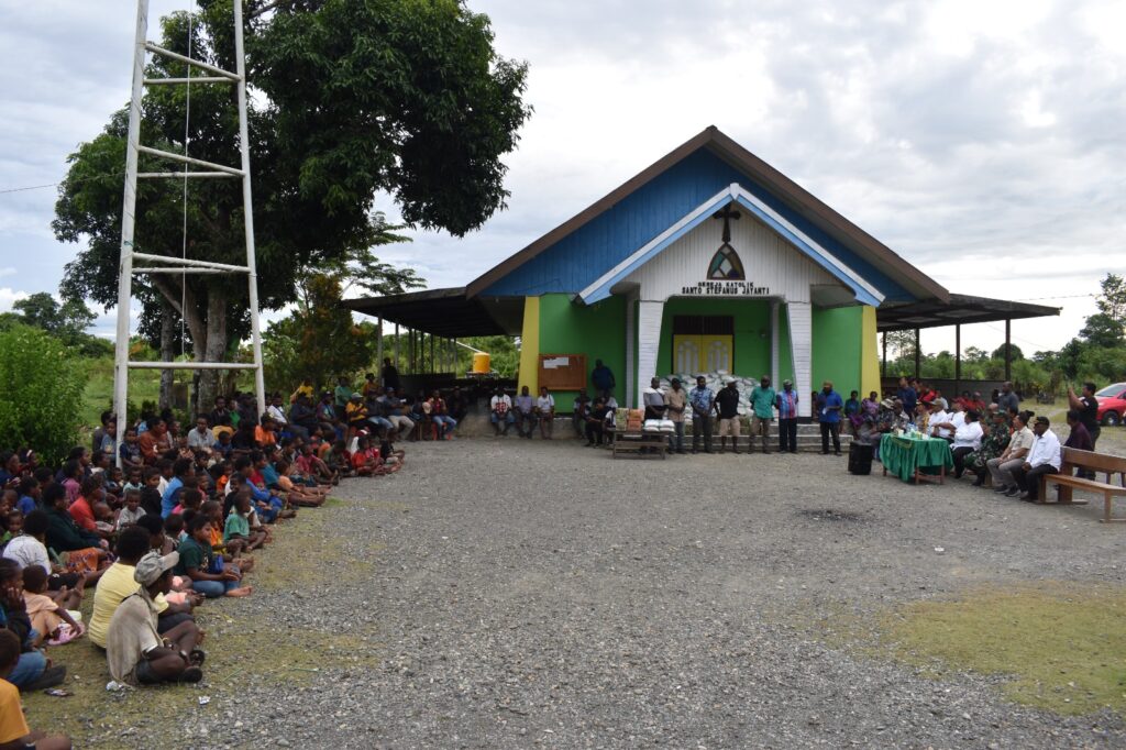 Nabire, Kepala Staf Korem 173/PVB Kolonel Inf Feksy Dimunry Angi, S.E., M.M., mendampingi Penjabat (Pj) Gubernur Prov. Papua Tengah, Dr. Ribka Haluk, S.Sos., M.M., dalam memberikan bantuan kepada para pengungsi yang terkena dampak konflik kamtibmas di wilayah Bibida Kab. Paniai, bertempat di Gereja Katolik ST Stevanus Nabire Jl. Ignasisus Distrik Nabire Kab Nabire Prov.Papua Tengah, Senin (17/06/2024).