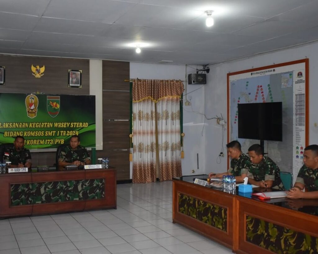Turut Hadir dalam kegiatan tersebut Kasiren Rem 173/PVB, Kasilog Kasrem 173/PVB, Kasi Intel Kasrem 173/PVB sertasPara Anggota Tim Wasev Komsos Staf Ter Angkatan Darat.