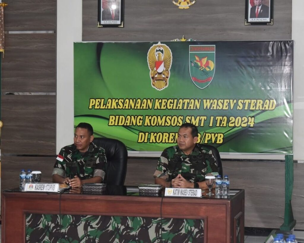 Kolonel Inf Feksy Dimunry Angi, S.E., selaku Kepala Staf Korem 173/PVB, beliau menyampaikan selamat datang kepada tim Wasev dari Staf Ter Angkatan Darat dan sekaligus menyampaikan pentingnya pengawasan terhadap Kinerja Staf teritorial sebagai bagian dari pertanggung jawaban dari Program kerja Bidang Teritorial dalam rangka meningkatkan kinerja serta efektivitas di lingkup kerja TNI Angkatan Darat.