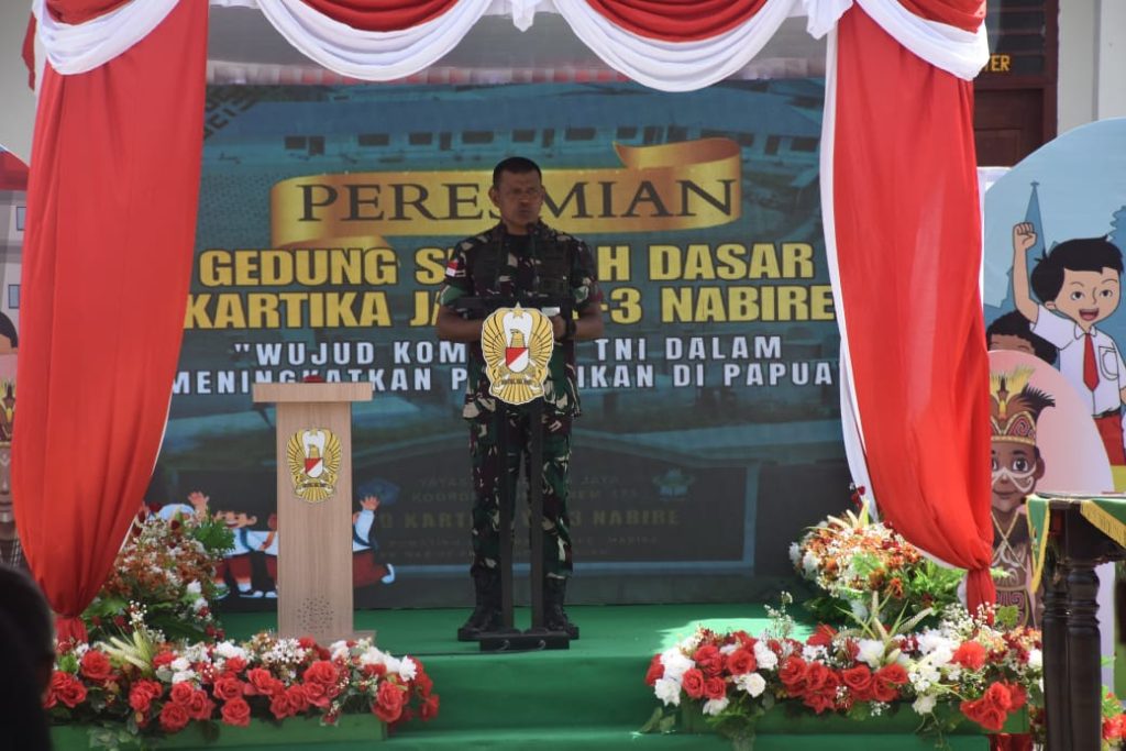 Mayjen TNI Frits W. R. Pelamonia juga menyampaikan bahwa keberadaan SD Kartika VI-3 menjadi bagian dari komitmen TNI untuk hadir dalam upaya mencerdaskan kehidupan bangsa, khususnya generasi muda Papua Tengah.