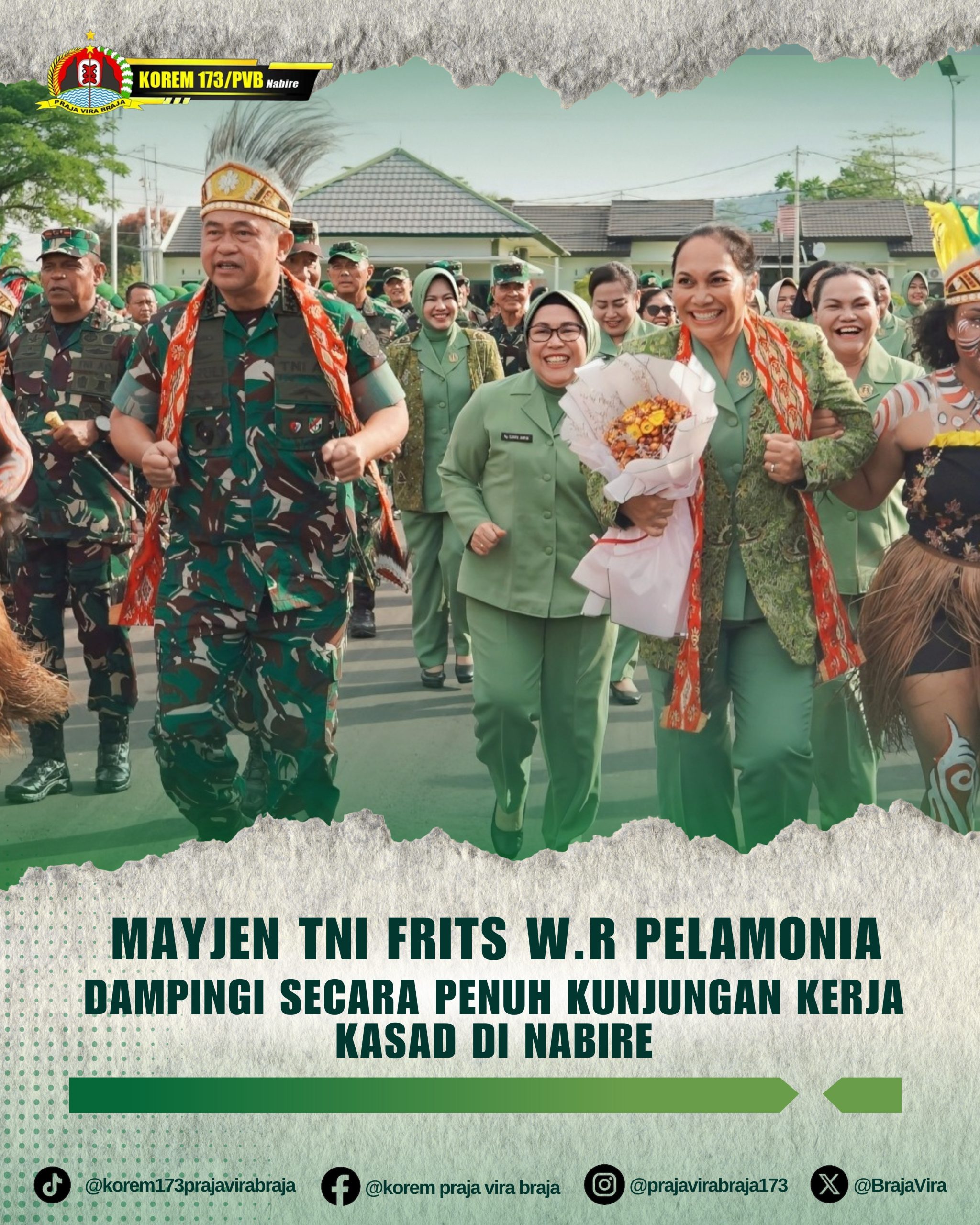 Nabire, Papua Tengah— Kepala Staf Angkatan Darat (Kasad) melakukan kunjungan kerja ke Kabupaten Nabire dalam rangka meresmikan SD Kartika VI-3 Nabire serta Program TNI Manunggal Air Bersih Tahun 2025, sebuah langkah strategis TNI AD untuk meningkatkan kualitas pendidikan dan kesejahteraan masyarakat Papua. Dalam kegiatan ini selaku Danrem 173/PVB, Mayjen TNI Frits W. R. Pelamonia tampak mendampingi secara penuh sejak kedatangan hingga rangkaian kegiatan berakhir. Rabu, 10 Desember 2025.