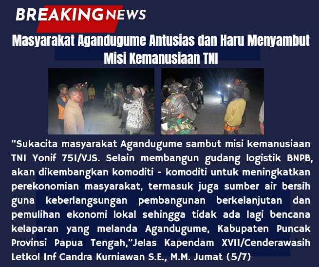 BerandaBerita unggulanMisi Kemanusiaan TNI🇮🇩 Berita unggulan Misi Kemanusiaan TNI🇮🇩 By admin Juli 5, 2024 0 3892 Bagikan FacebookTwitterWhatsApp Tagskodam17korem 173nabireprovinsipapuatengah Bagikan FacebookTwitterWhatsApp Artikel SebelumnyaKasrem 173/PVB Pimpin Upacara Penerimaan Satgas Pamtas Kewilayahan Yonif 756/WMS di Pelabuhan Samabusa, Kabupaten Nabire, Provinsi Papua TengahArtikel SelanjutnyaKasrem 173/PVB Mewakili Danrem 173/PVB Menerima Tim Pengawasan Audit Kinerja Itjenad adminhttps://korem173.tni-ad.mil.id RELATED ARTICLES Berita unggulan Pimpin Upacara 17-an di Makorem 173/PVB, Brigjen TNI I Ketut Mertha Gunarda Tekankan Disiplin, Akuntabilitas Program Kerja dan Peran Prajurit Bangun Papua Maret 17, 2026 Berita unggulan Kolonel Inf Budy Suradi Hadiri Rapat Kesiapan Pengamanan Idul Fitri 1447 H di Nabire, Perkuat Sinergi Lintas Sektoral Maret 12, 2026 Berita unggulan Kasi Intel Kasrem 173/PVB Kolonel Inf Budy Suradi Hadiri Rapat Pimpinan Polda Papua Tengah 2026, Perkuat Sinergitas TNI–Polri Demi Stabilitas Keamanan dan Dukungan Program... Maret 12, 2026 TINGGALKAN KOMENTAR Batal membalas Komentar: Silakan masukkan komentar anda! Nama:* Silakan masukkan nama Anda di sini Email:* Anda telah memasukkan alamat email yang salah! Silakan masukkan alamat email Anda di sini Website: Simpan nama, email, dan situs web saya di browser ini untuk lain kali saya berkomentar. Δ Berita Populer Pimpin Upacara 17-an di Makorem 173/PVB, Brigjen TNI I Ketut Mertha Gunarda Tekankan Disiplin, Akuntabilitas Program Kerja dan Peran Prajurit Bangun Papua Maret 17, 2026 Kolonel Inf Budy Suradi Hadiri Rapat Kesiapan Pengamanan Idul Fitri 1447 H di Nabire, Perkuat Sinergi Lintas Sektoral Maret 12, 2026 Kasi Intel Kasrem 173/PVB Kolonel Inf Budy Suradi Hadiri Rapat Pimpinan Polda Papua Tengah 2026, Perkuat Sinergitas TNI–Polri Demi Stabilitas Keamanan dan Dukungan Program... Maret 12, 2026 DIRGAHAYU KOSTRAD KE 65 TAHUN Maret 6, 2026 Muat lebih banyak Komentar Terbaru budi pada KOMITMEN JAGA NETRALITAS TNI, DANREM 173/PVB SOSIALISASIKAN NETRALITAS TNI DI WILAYAH KAB. SUPIORI.