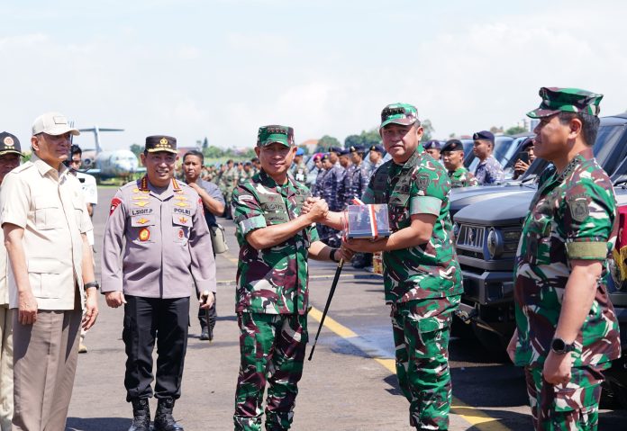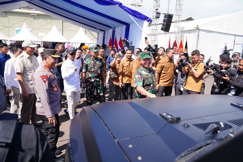 Puspen TNI). Panglima TNI Jenderal TNI Agus Subiyanto bersama Kapolri Jenderal Pol. Listyo Sigit Prabowo menerima penyerahan Kendaraan Khusus (Ransus) Maung MV3 buatan PT. Pindad yang dilakukan secara simbolis oleh Menteri Pertahanan (Menhan) RI Sjafrie Sjamsoeddin, bertempat di Appron Lanud Husein Sastranegara, Bandung, Jawa Barat, Sabtu (01/03/2025).