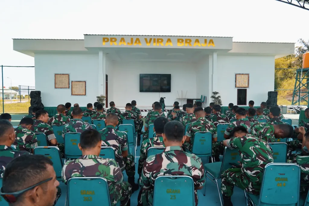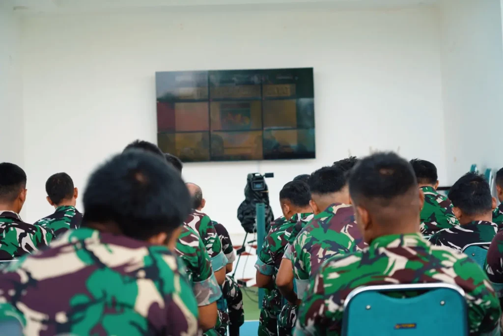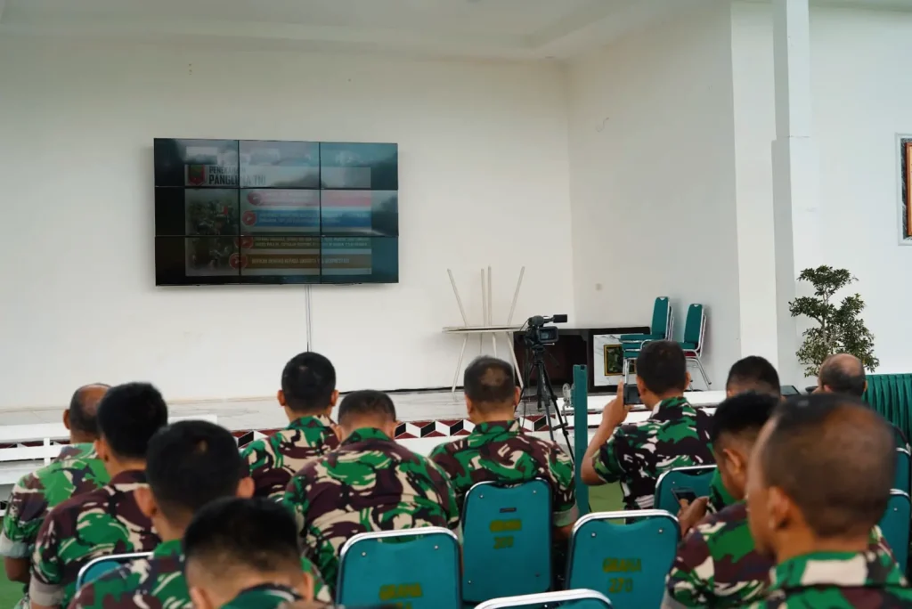 Nabire, Papua Tengah – Panglima Komando Daerah Militer (Pangdam) XVII/Cenderawasih Mayjen TNI Amrin Ibrahim, S.I.P. memberikan pengarahan kepada seluruh prajurit jajaran Kodam XVII/Cenderawasih melalui video conference (vicon), yang diikuti secara terpusat oleh prajurit Korem 173/PVB di Lapangan Tenis Makorem 173/PVB, Jalan Kusuma Bangsa, Kabupaten Nabire, Provinsi Papua Tengah, pada Jumat (20/02/2026).