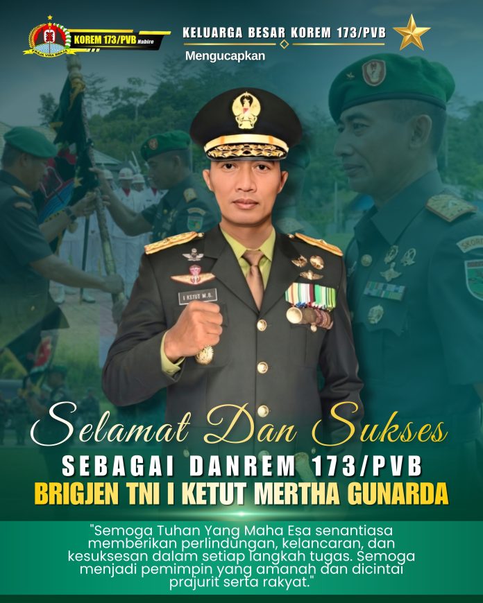 Keluarga Besar Korem 173/PVB, mengucapkan Selamat dan Sukses Sebagai Komandan Korem 173/PVB.