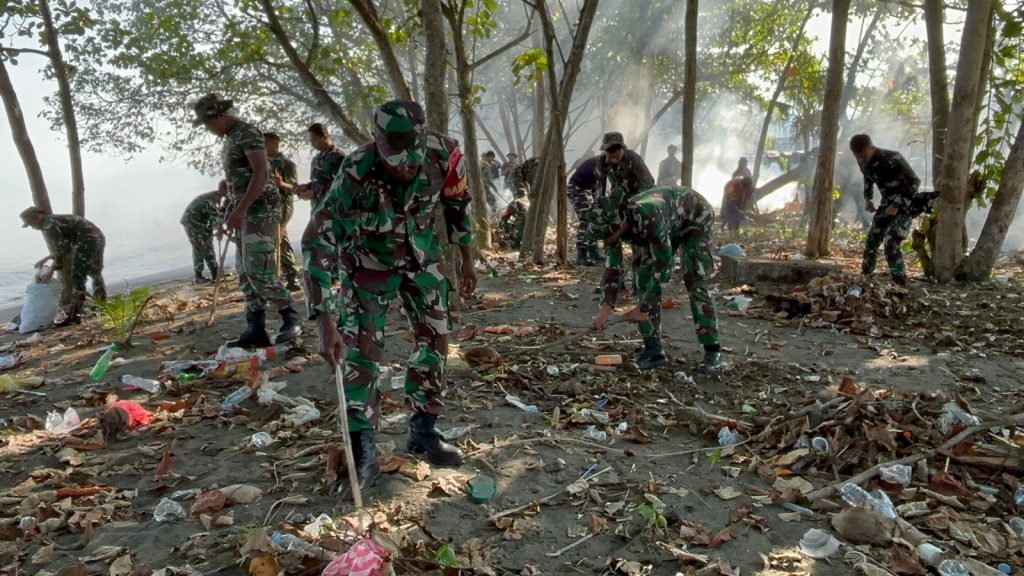 Sejak pagi hari, personel Korem 173/PVB bersama anggota TNI-Polri dan petugas Dinas Lingkungan Hidup Kabupaten Nabire telah berkumpul di lokasi kegiatan. Dengan penuh semangat kebersamaan, seluruh peserta membersihkan sampah plastik, kayu, rumput liar, serta berbagai jenis limbah lainnya yang mencemari kawasan pantai.